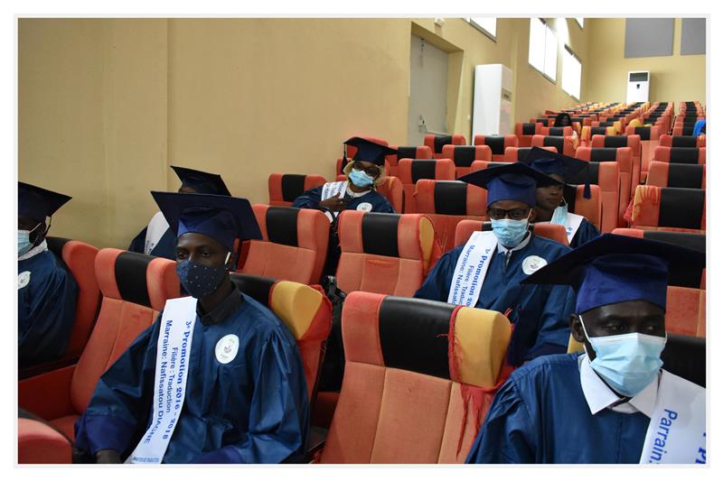 Cette cérémonie présidée par le Recteur, le Professeur Ousmane THIARÉ, en présence du ministre du tourisme et des transports aériens, de la marraine, du parrain, couronne le succès de ses diplômés qui ont satisfait aux exigences de la filière traduction.